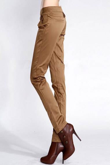 ОписаниеБрюки цвета кэмел, с небольшой драпировкой в области талии. Облегающий покрой, чуть расширенный в области бедер, средняя посадка и пояс на пуговице. Имеются карманы.